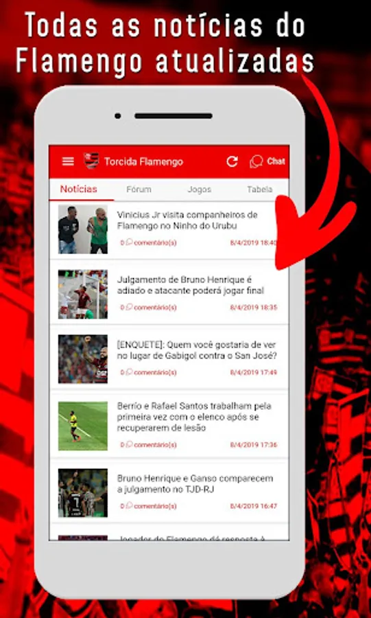 The Torcida Flamengo - Notícias also has a forum where you can comment on everything that happens in Flamengo and a chat with only rubro-negros fans.