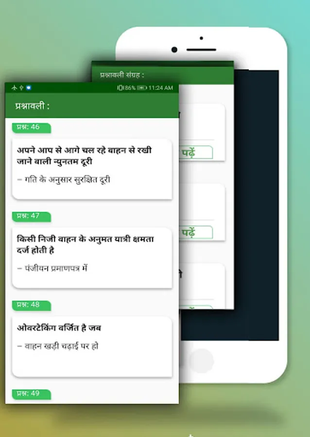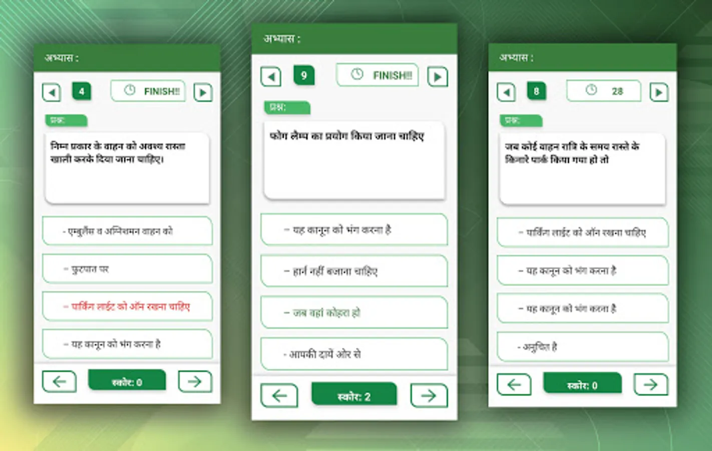 Note : This app is not associates in any manner with the respective RTO or Ministry of Road Transport & Highways. This rto mock test app is only to provide you hint of hindi driving license test (RTO exam in hindi).