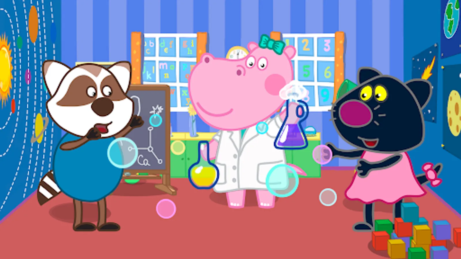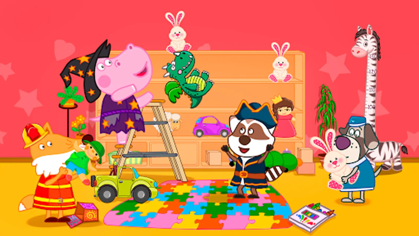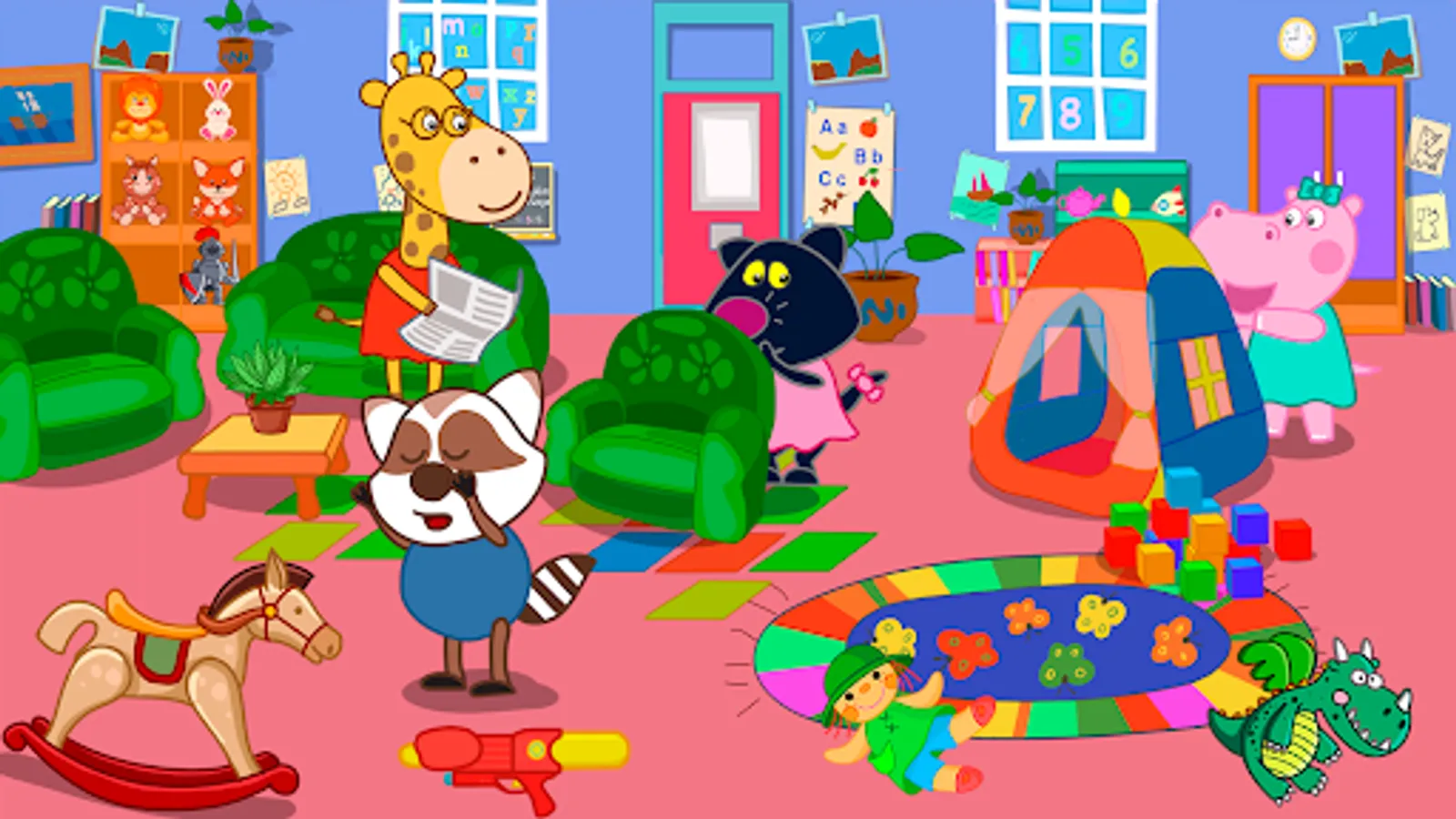 Let’s start an exciting adventure in this kids game about a shop, where Hippo and her funny friends open their own toy shop in the nursery. Our main character Hippo and her team will learn how to sell, buy and manage a toy shop, they will develop the skills of learning colours, counting, and finding objects on the shelves. When small players meet customers, they will help them to find objects, count everything and give change. Small players will help Hippo and her friends to manage the toy shop.
