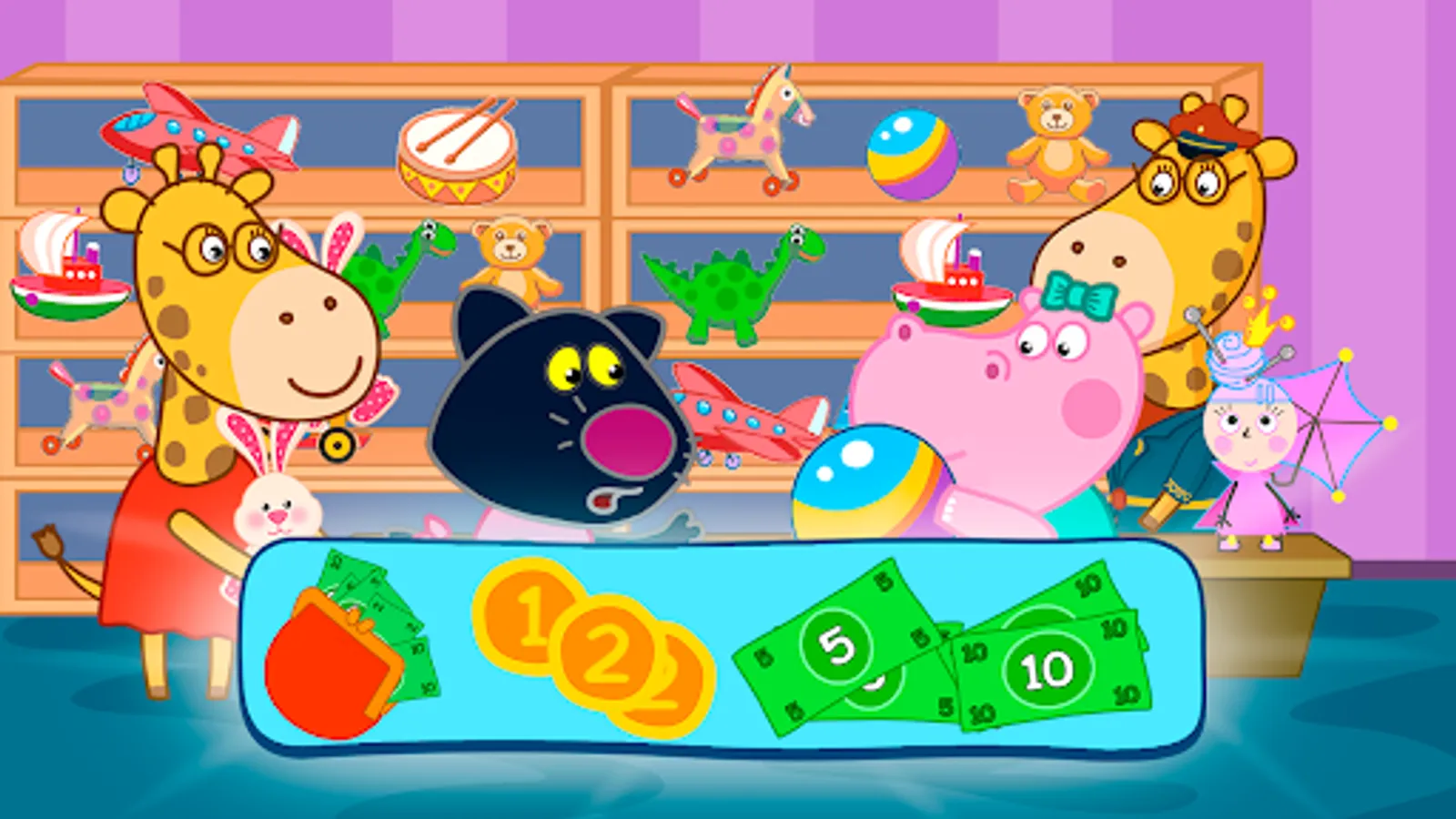 Welcome to a new exciting kids game about Hippo and a toy shop! Kids from 2 to 5 will learn colours, how to count, and find objects in this educational kids game for boys and girls. There are a lot of exciting tasks in this shopping game about the toy shop. Interesting educational shopping games for kids on your smartphone!