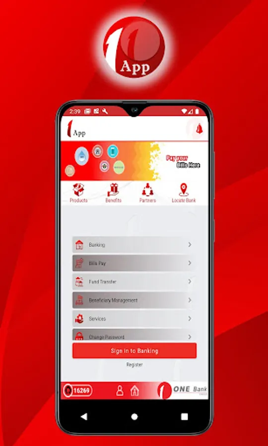 “1 App” is a smart banking application which is designed to provide some unique features and functionalities in addition to the general features to make transactions anytime anywhere such as to know account balance and latest transaction information, make utility bill payment and P2P payments, make card transactions and card payments, make funds transfers to ONE Bank accounts or other Bank accounts. In addition to these general features, “1 App” will have option to make Service Request like Solvency Certificate Issuance, Tax Certificate Issuance, Pay Order/ FDD Issuance and make Emergency Service Request like stop payment instruction, cheque book requisition with option to receive feedback directly from app, etc. “1 App” will have additional facility like Messaging Service for Promotional Offers, Campaign Offers, System Down Messages, Awareness Messages directly from the app.