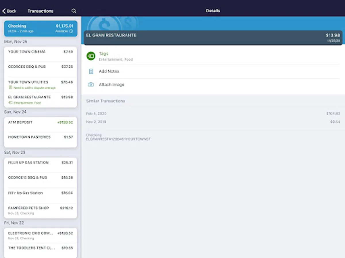 Keep your transactions organized by allowing you to add tags, notes and photos of receipts and checks.