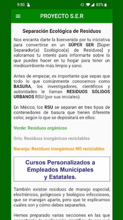 The function of S.E.R is to educate the user so that he can carry out proper waste management at home.
