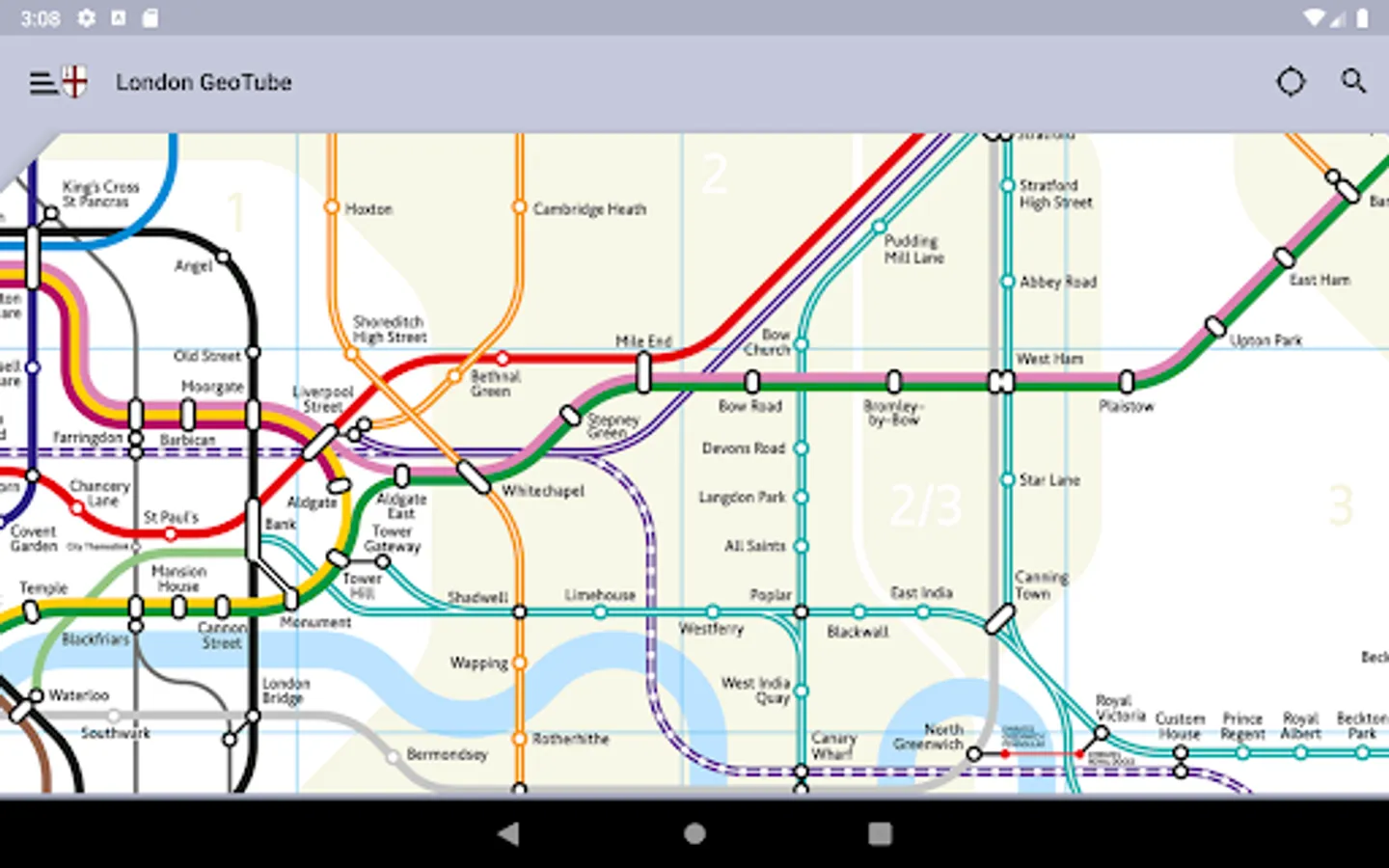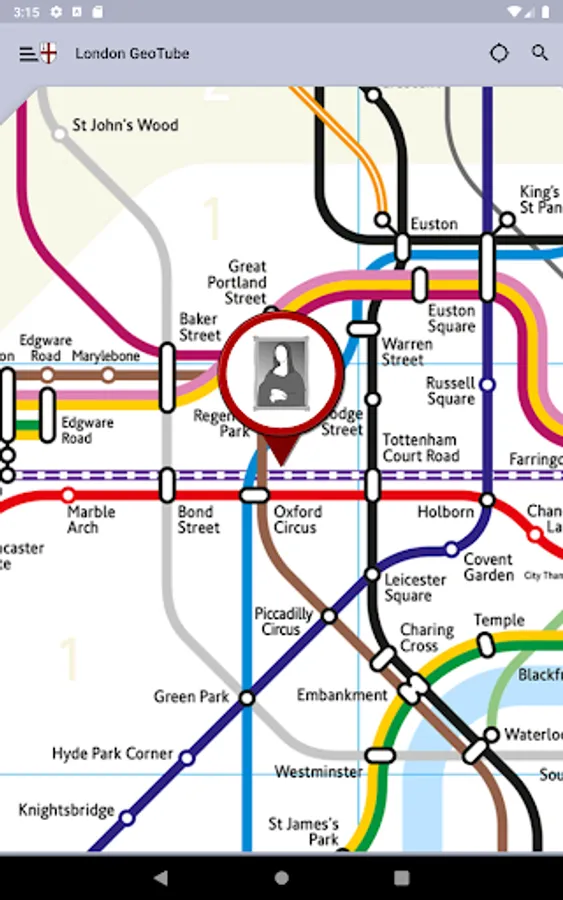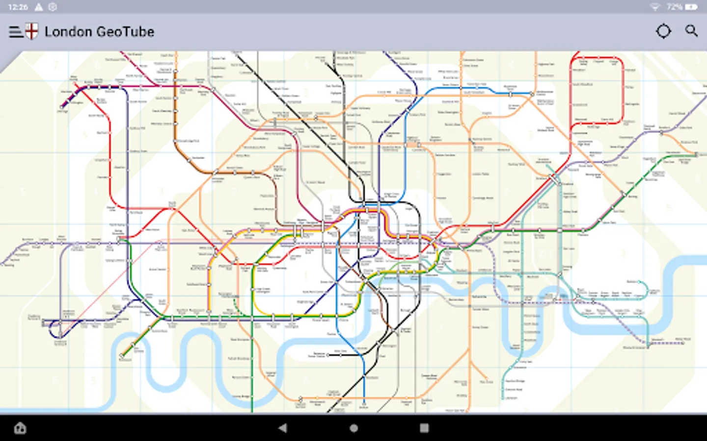 Geographically representative map of the London Underground to assist with real world positioning of Tube stations. Suitable for use by both regular users of the Underground as well as visitors and tourists.