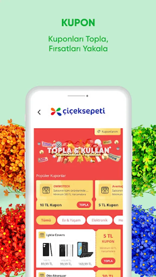 Çiçeksepeti mobil uygulaması ile online alışverişin tadını çıkarın! İster sevdiklerinize hediye veya çiçek gönderin, ister online mağaza Extra’da online alışveriş trendlerini yakalayın! Trendy ürünler, günün fırsatları burada!