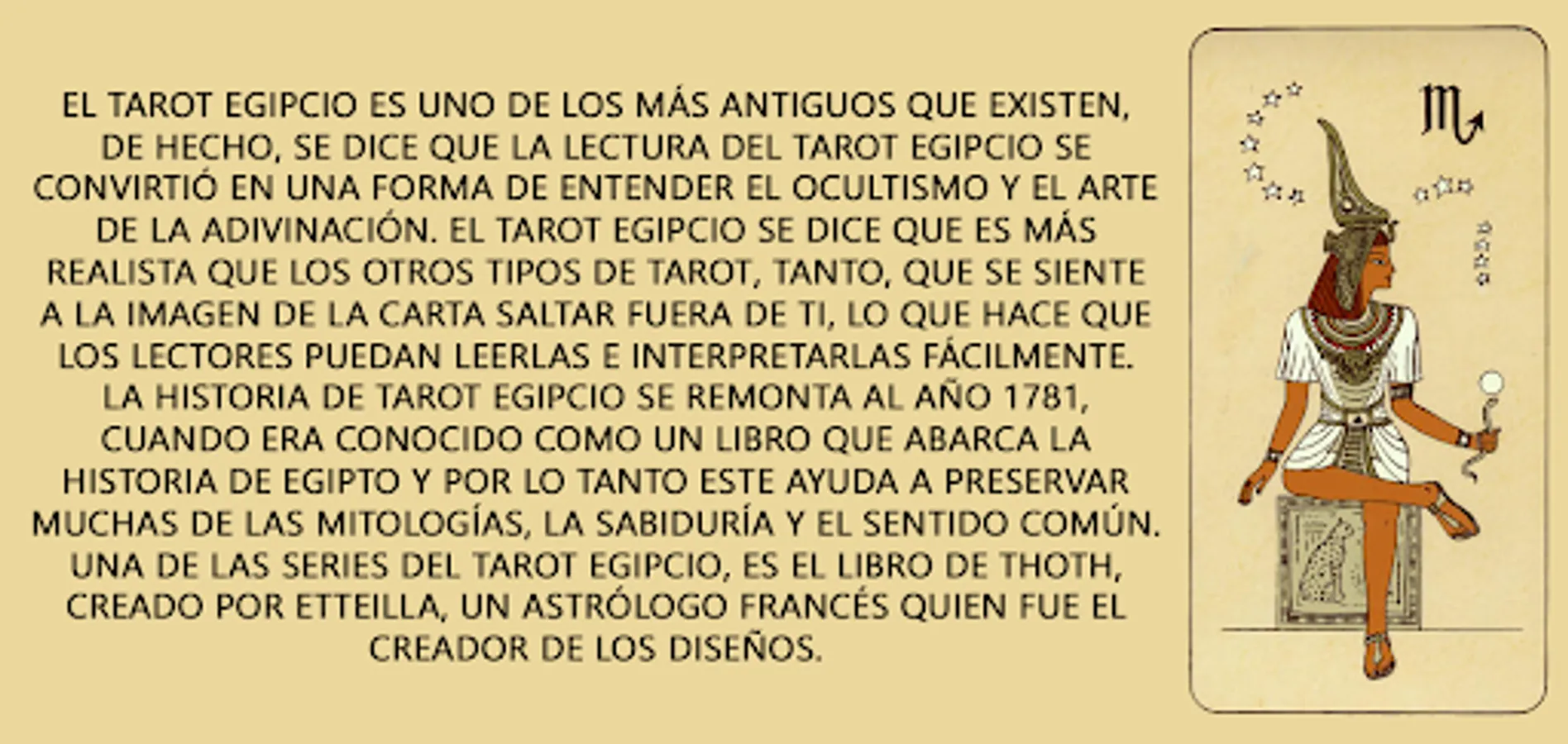 The history of the Egyptian tarot goes back to the year 1781, when it was known as a book that covers the history of Egypt and therefore helps to preserve many of the mythologies, wisdom and common sense. One of the Egyptian Tarot series, is the Book of Thoth, created by Etteilla, a French astrologer who was the maker of the card.