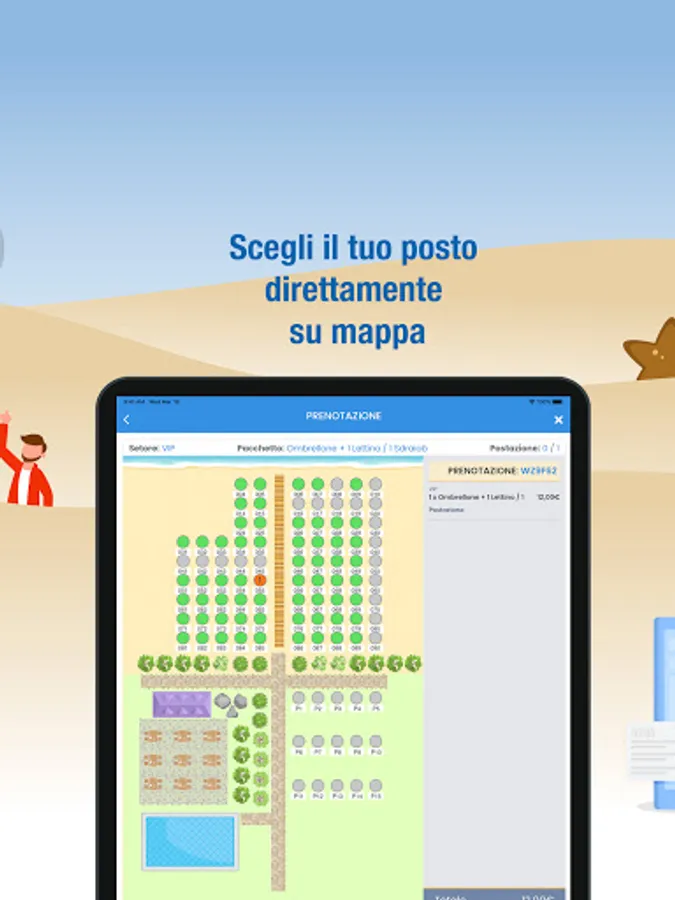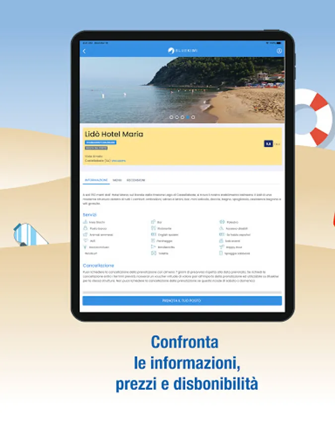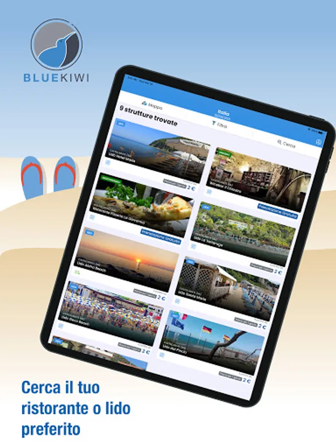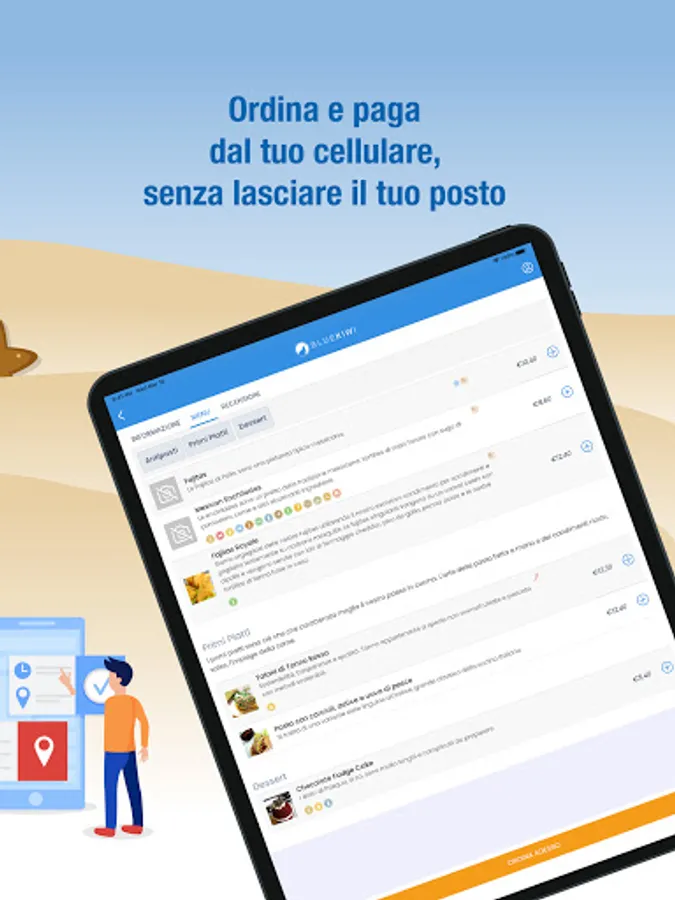 With BLUEKIWI, customers can book a table or an umbrella at your Beach Resort or Restaurant, consult the digital menu or the list of services offered and book them directly from the table or sunbed on the beach