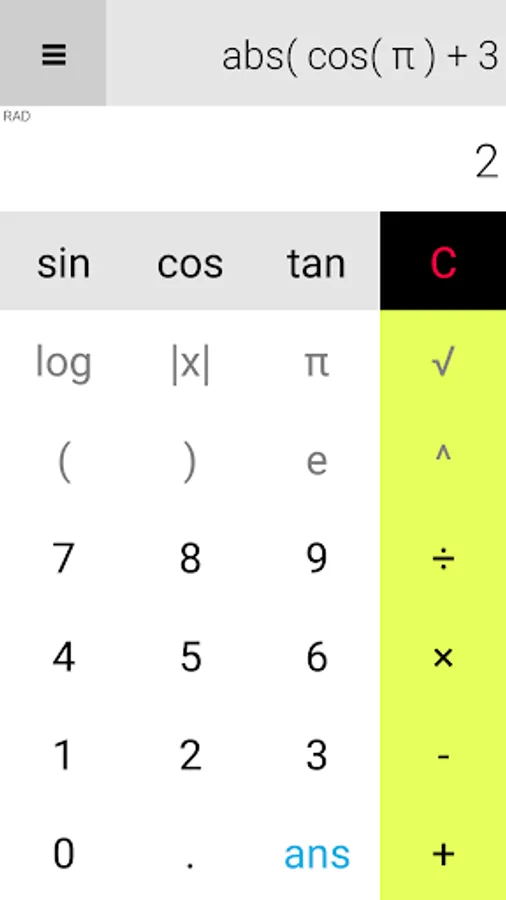 * Operators & Functions [ "(" , ")" , "+" , "-" , "×" , "÷" , "^" , "|x|" , "sin" , "cos" , "tan" , "asin" , "acos" , "atan" , "log" , "!" , "√" , "%" ]