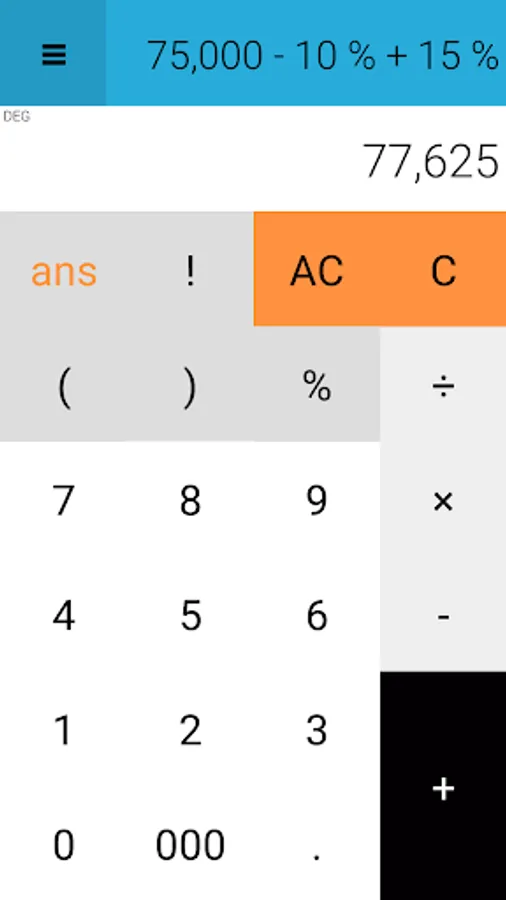 Real time calculation. You do not need to press the equal button on this calculator, your value will be calculated in real time.