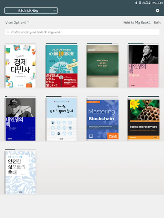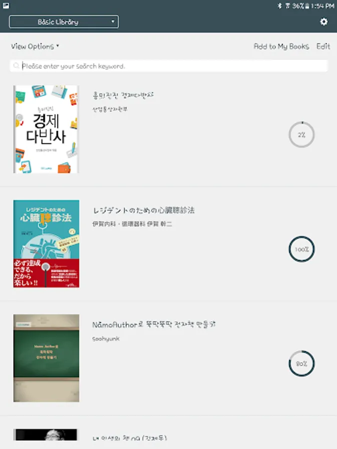- Adding e-books by file sharing feature such as open in