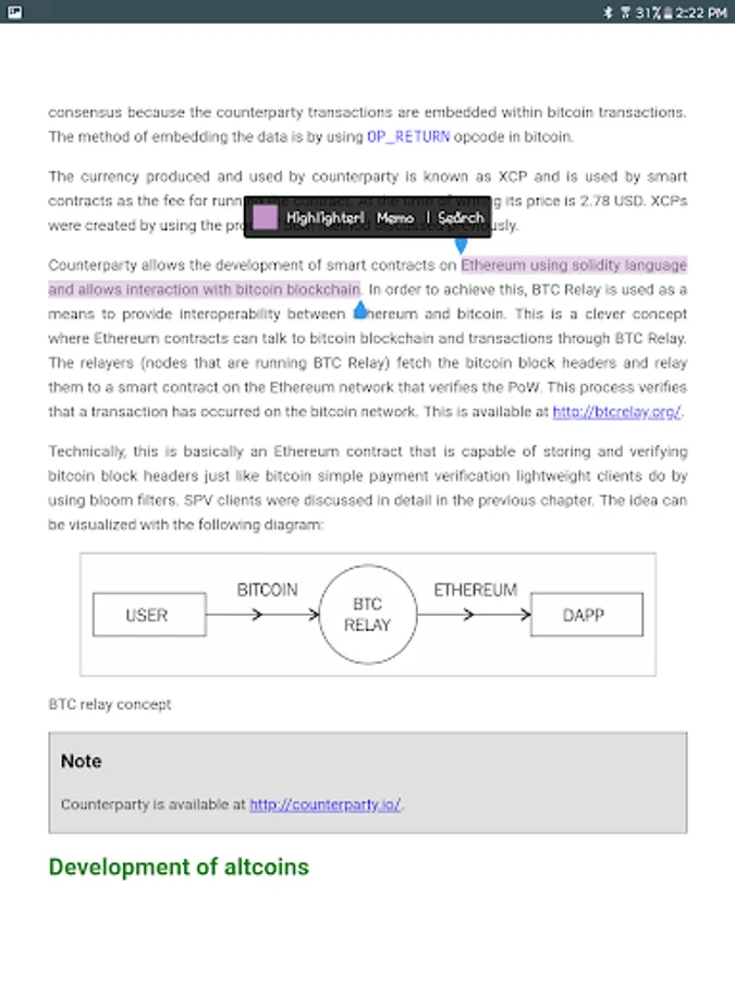 - Table of contents, bookmarks, memos, highlights