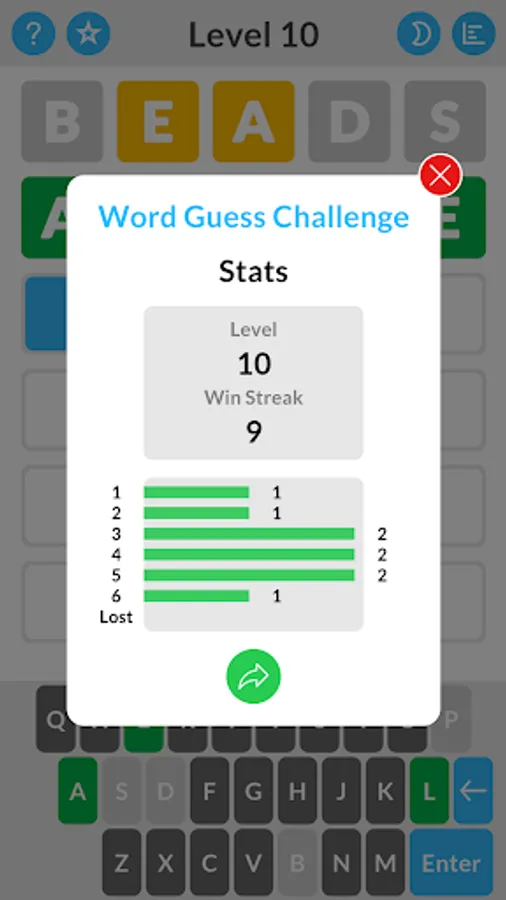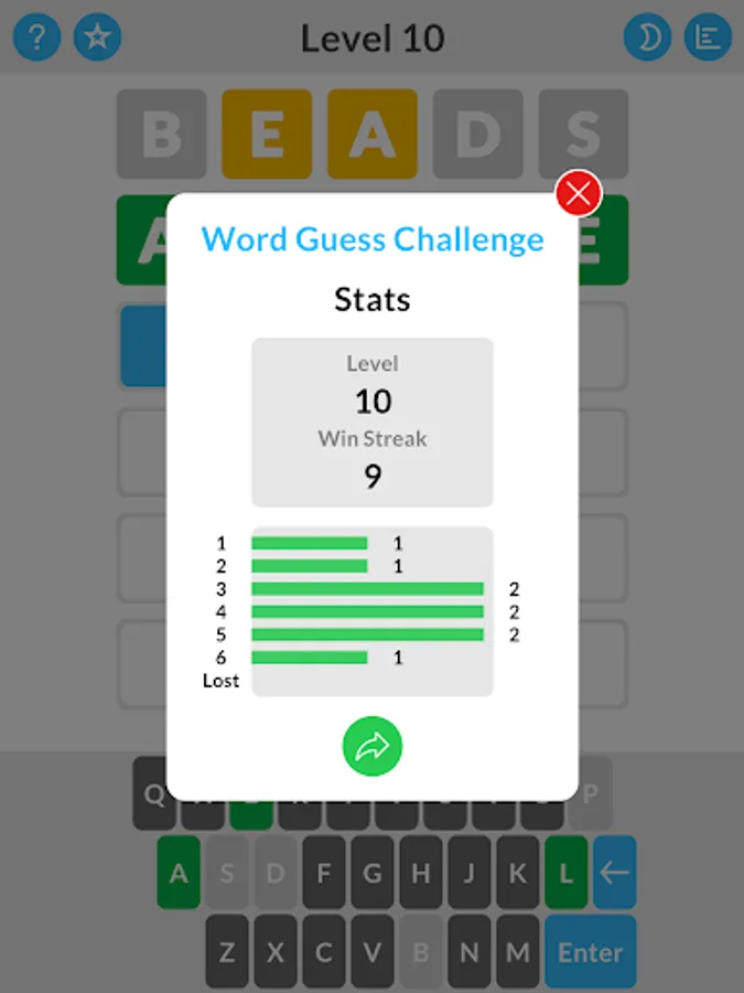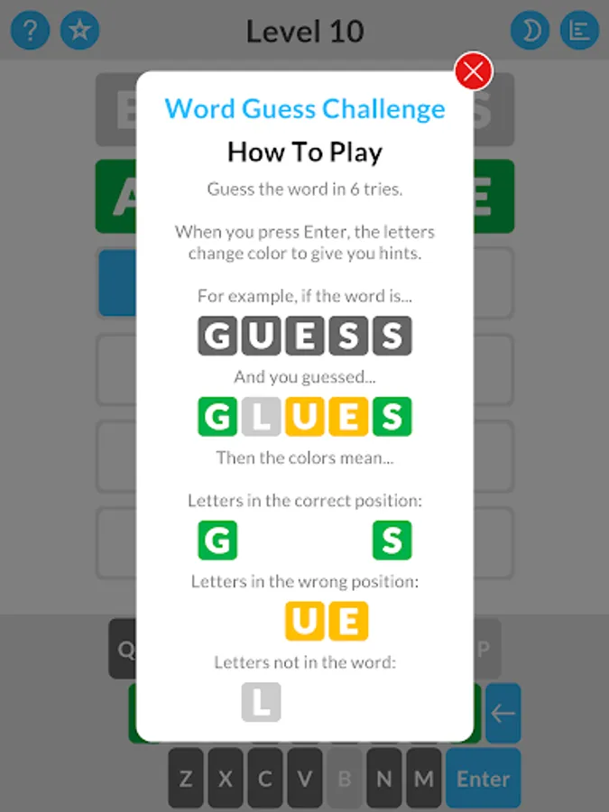 Challenge your friends! Guess the word in 6 tries or less. The letters in your guess change color to give you hints. Keep track of your stats and compete with your friends! Unlimited games per day.