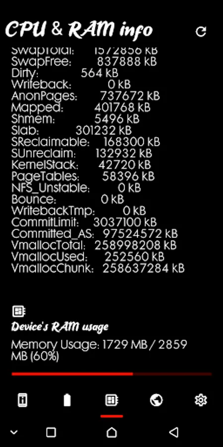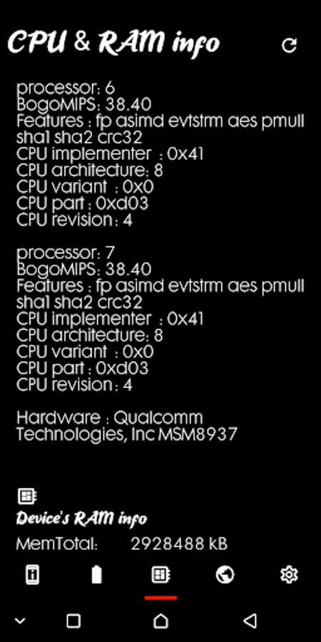This app ahows your system info Plus so many others. This is a great app for every android user. Do not be left in the dark.