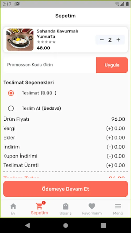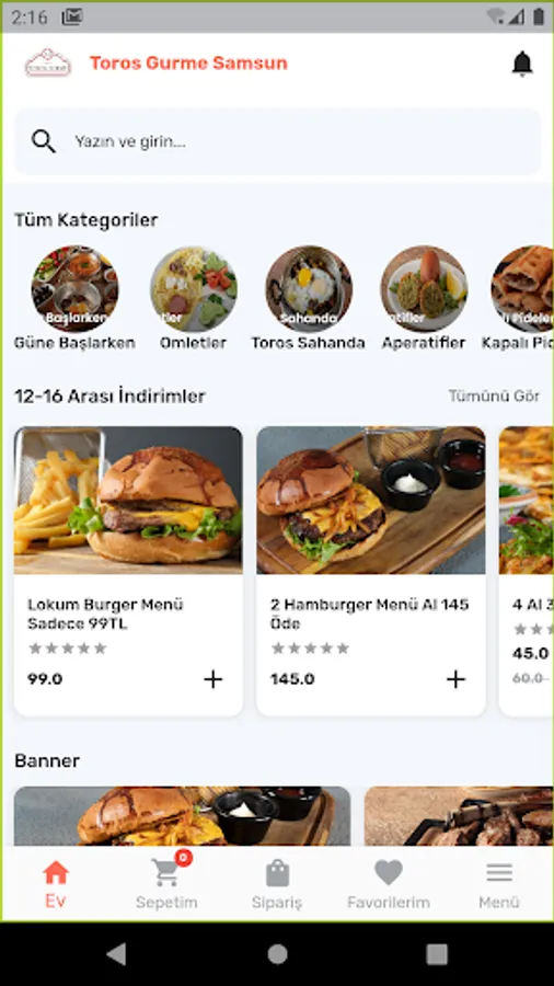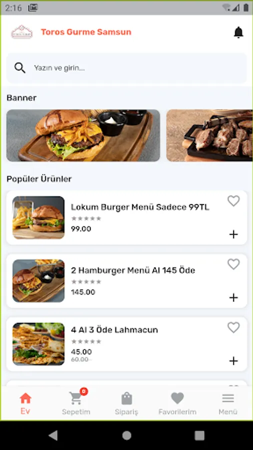 You can order easily thanks to Samsun Toros Gourmet Order Application. It provides service only in Samsun/Atakum region.