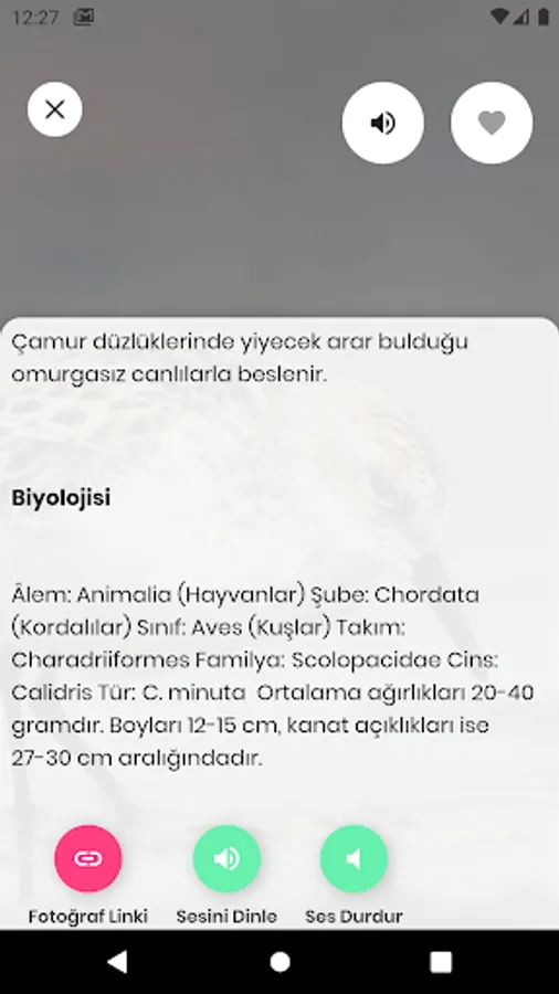 The heart of birds is an application that contains all kinds of information about the bird species in the Kızılırmak Delta and the Kızılırmak Delta, one of the most beautiful places in the world, and the sounds of the birds.
