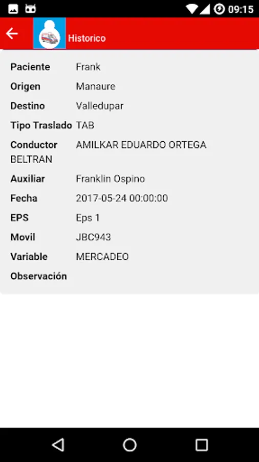 An application for managing transfers own Clinic Integral De Laura Daniela Emergency ambulance.