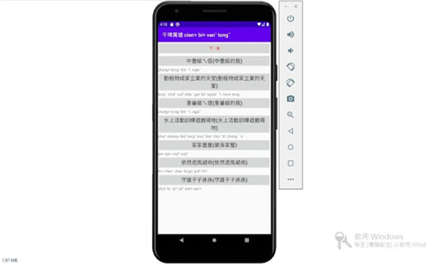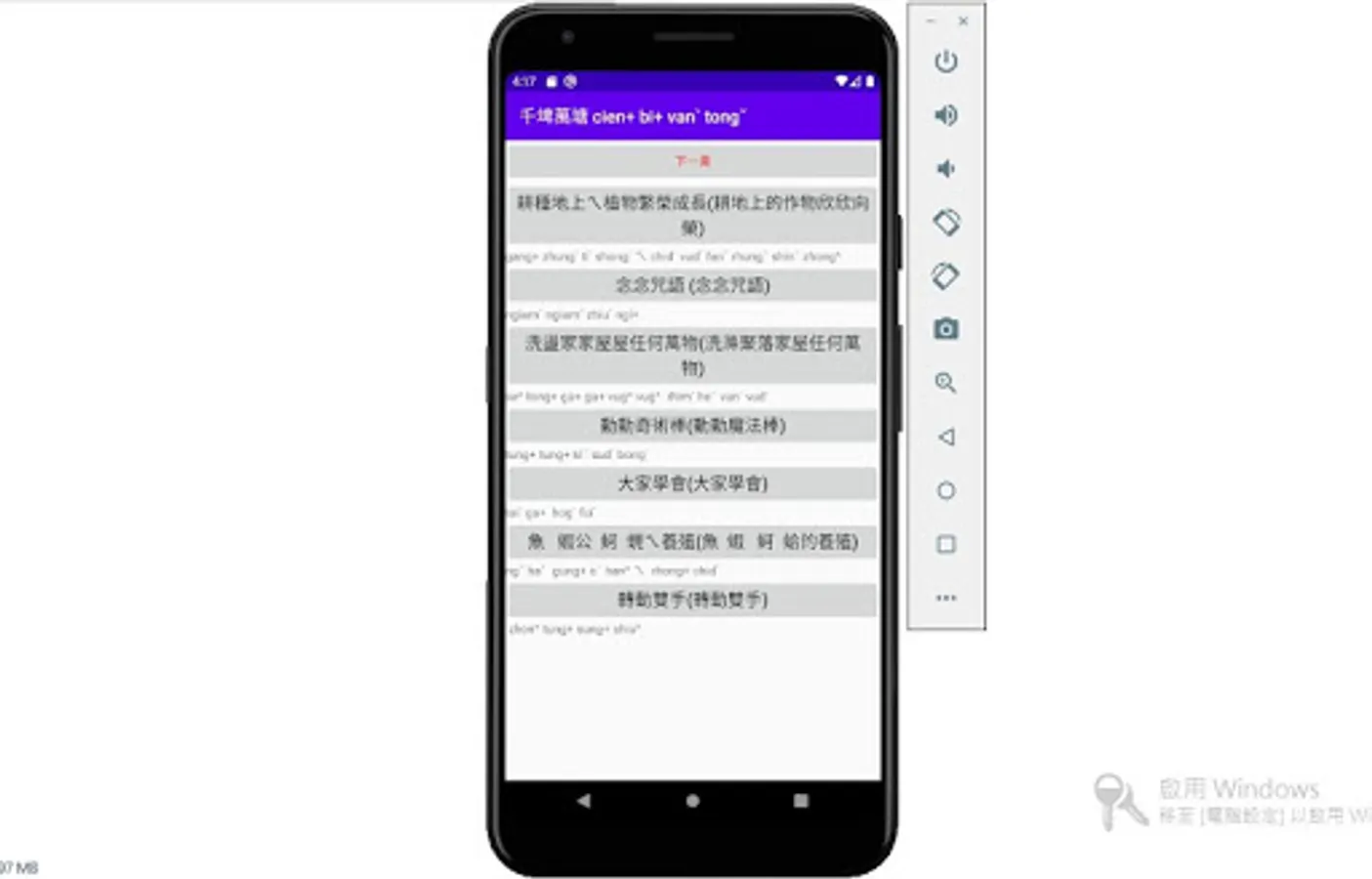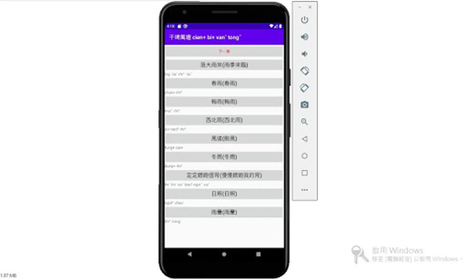 The new sound poems of Hakka dialect in Dapu dialect, as long as you press the gray button, there will be a Hakka dialect in Dapu dialect. If you press the button too fast, there will be no sound. As long as you restart the app, there will be a sound.
