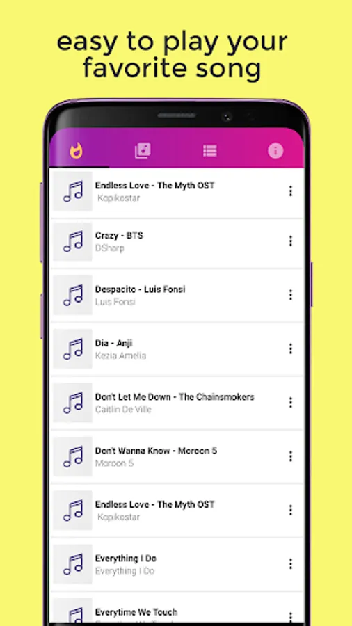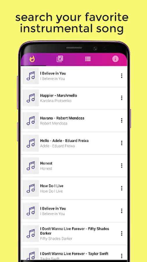 You like instrumental violin? You have chosen the right application. This application provides a list of instrumental violin popular songs. Use the search feature to find your favorite song. You can also listen and play all the songs in it in online or offline streaming mode. To go offline you can simply choose the song you want, then tap on the settings and save the song into your device. Very simple and easy