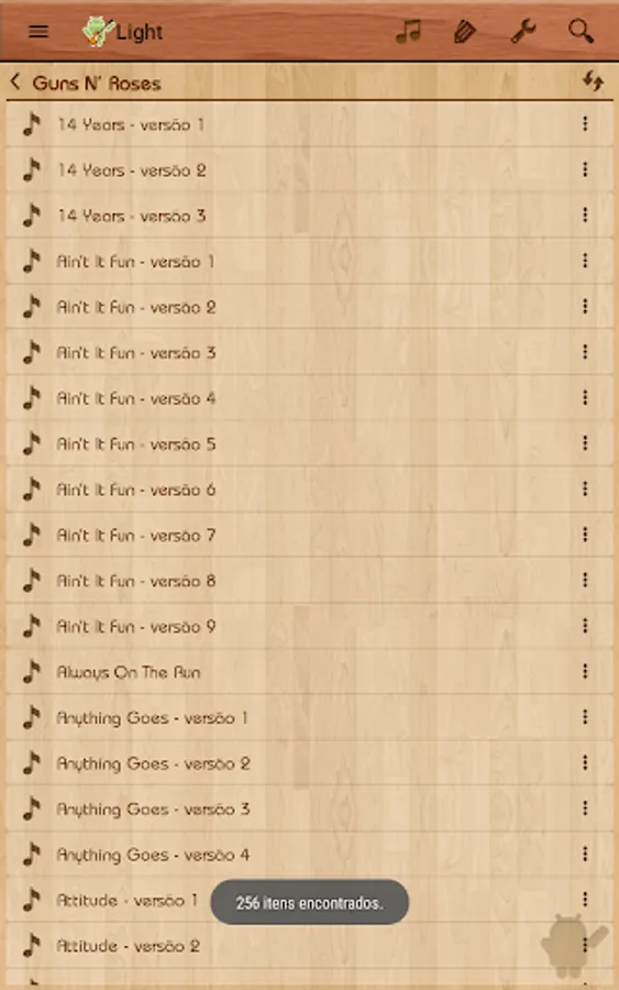 In the Light version, you enter only the artists and songs you want. There are more than 451,000 encrypted songs and tablatures by more than 66,000 artists available for download and stored in the App, eliminating the need to access the internet to access the figures.
