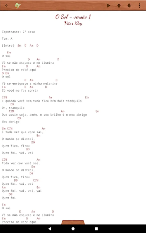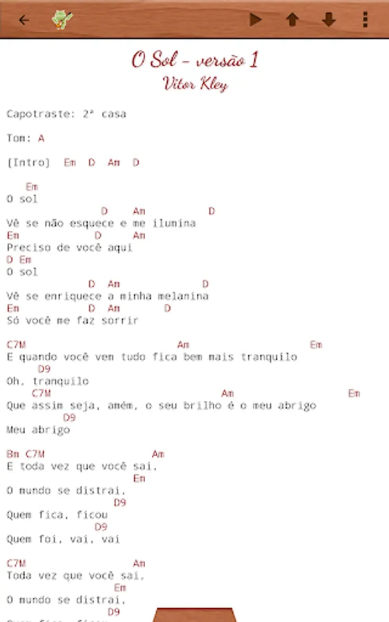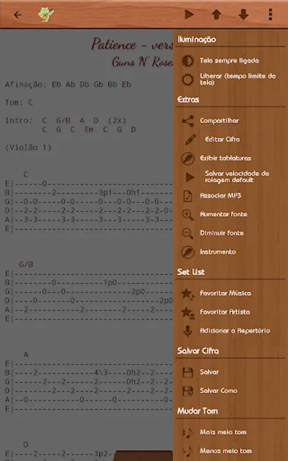 In the viewer of the figures and tablatures, you can increase or decrease the tone of the song, enabling a better execution of the song and adaptation to the singer's voice tone.
