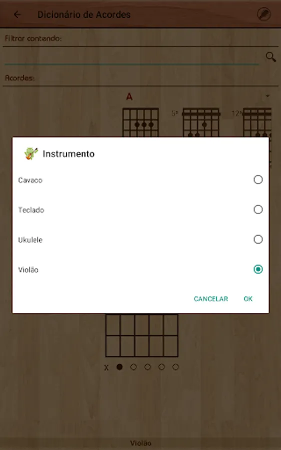 If an encrypted song is playing and you do not know a chord or need to find a variation more faithful to the song, the App has the functionality to display the chord of the encrypted music by clicking on it. When displaying the chord, the App also shows its variations.