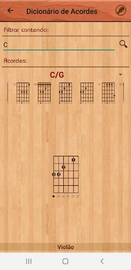 If an encrypted song is playing and you do not know a chord or need to find a variation more faithful to the song, the App has the functionality to display the chord of the encrypted music by clicking on it. When displaying the chord, the App also shows its variations.