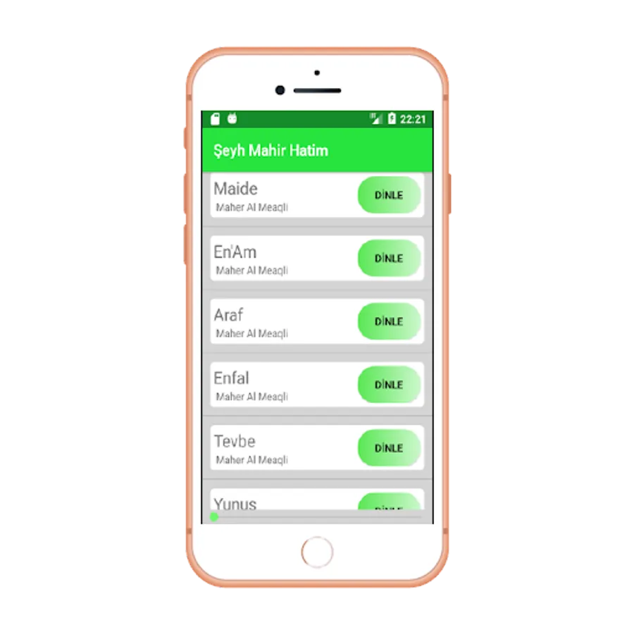You can listen to the Quran as the voice of all time. / You can listen to all of the surahs of the Quran aloud.