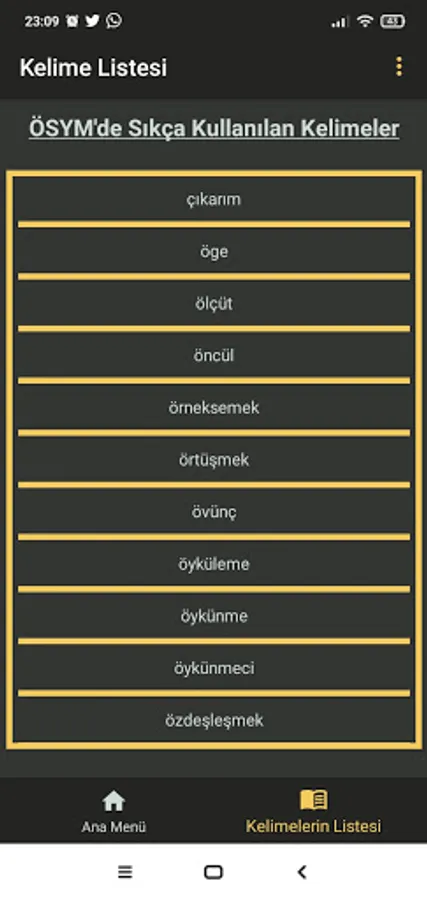 This application offers the frequently used words in ÖSYM, with the list it contains.