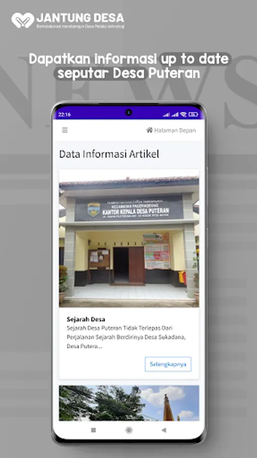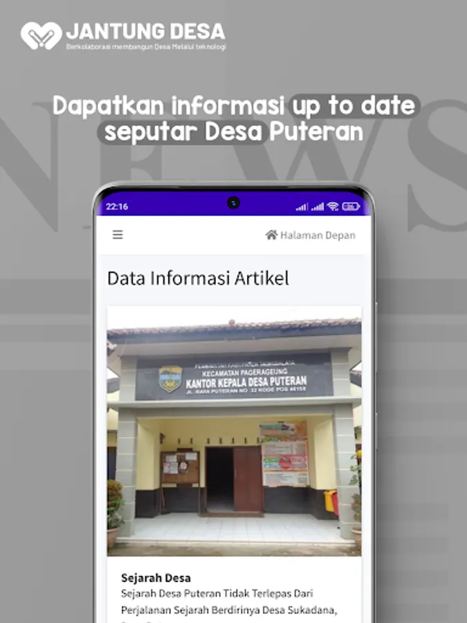 The Heart of Puteran Village is an android-based Village information system application that functions as a visitor to the needs of Digital Village services in Puteran Village. This application was developed to facilitate administrative interaction between the Village Government and the Village community through technology.