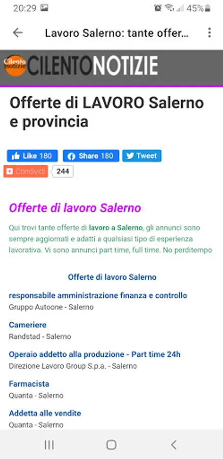 Download the app (includes a handy widget) to be updated on news, politics, news, sports, environment, culture, art, shows and events. Everything is classified and put into categories for a quick and practical search. The last hour and video on Agropoli, Castellabate, Capaccio Paestum, Vallo della Lucania, Pontecagnano, Battipaglia, Eboli, Roccadaspide, Casal Velino, Pollica-Acciaroli, Palinuro, Torchiara, Sapri, Camerota, Vallo di Diano and the Gulf of Policastro.