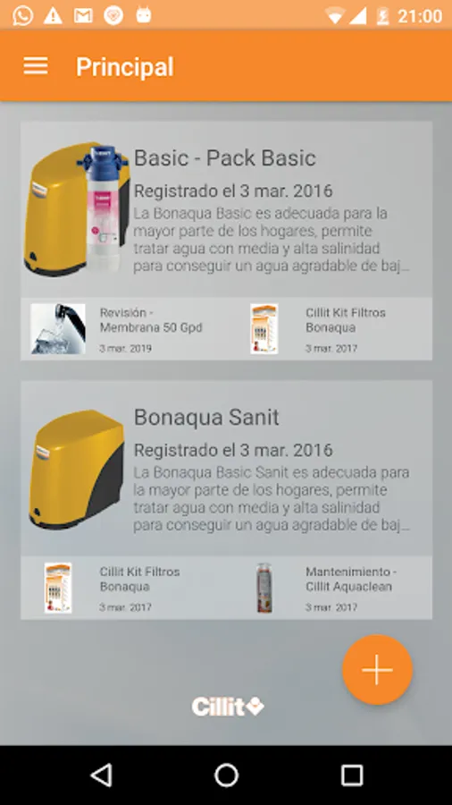 La application developed is a tool designed to be indispensable for any user CILLIT team owner. Through it, and then register as a user simply, you can independently manage everything related to the computer.