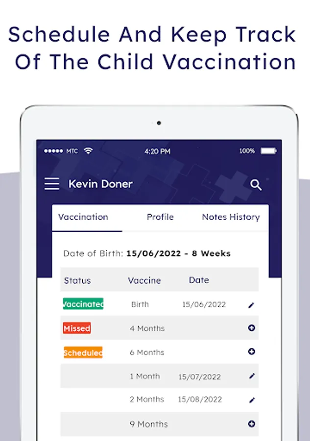 The clinic can use the app to send automated reminders to the parents for the vaccination appointments of their children, as well as health education messages on the benefits of the vaccination (provided publicly by UNICEF), plus parenting skills messages (provided publicly by the UNODC). The clinic can trace the number of children that have received their vaccination.