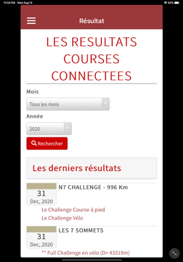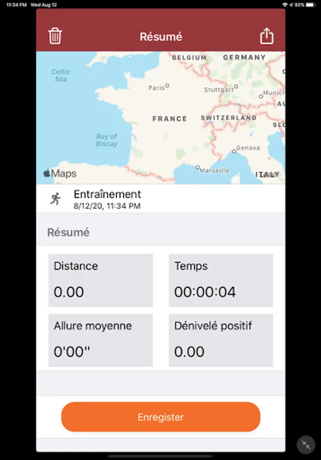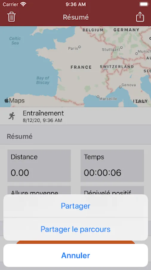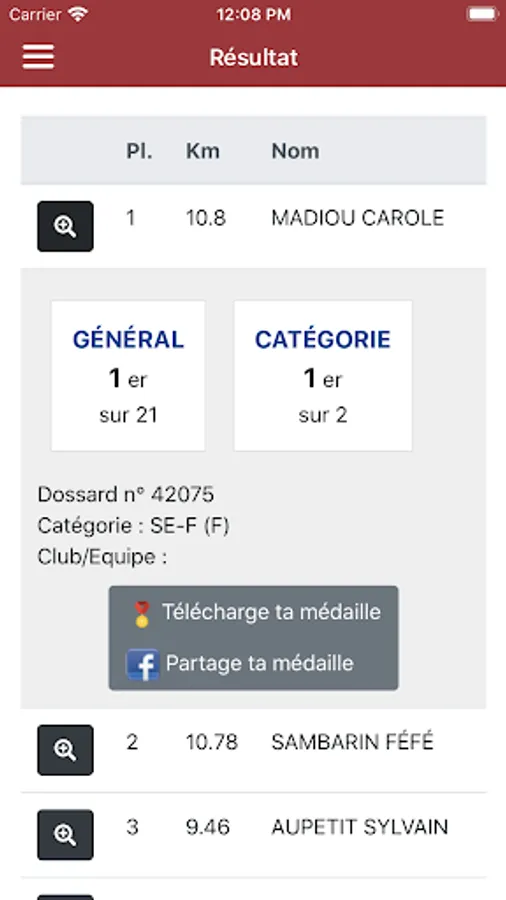 He starts his chrono via the application and once his session is over, he can automatically export his file to the results of the course in which he is participating.