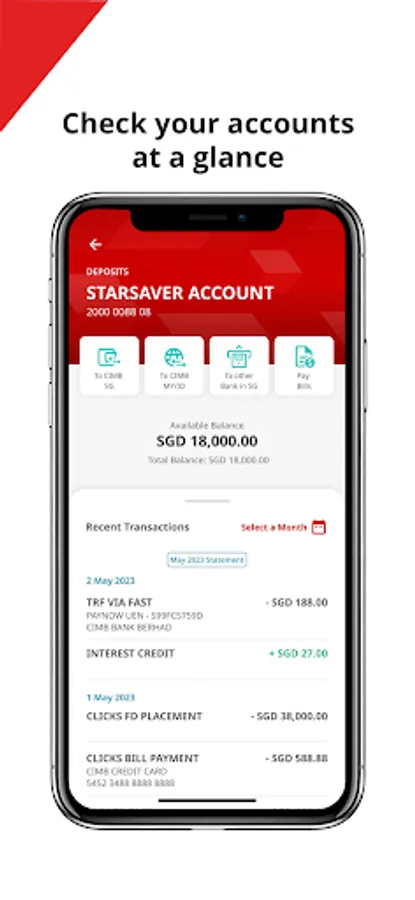 Bank simply and securely with Face ID, Biometrics Login and Digital Token. Accounts at a glance and quick-links to actions you do frequently. More self-services tool for your Clicks access - you can now use Singpass Face Verification to sign up, change password or unlock access.