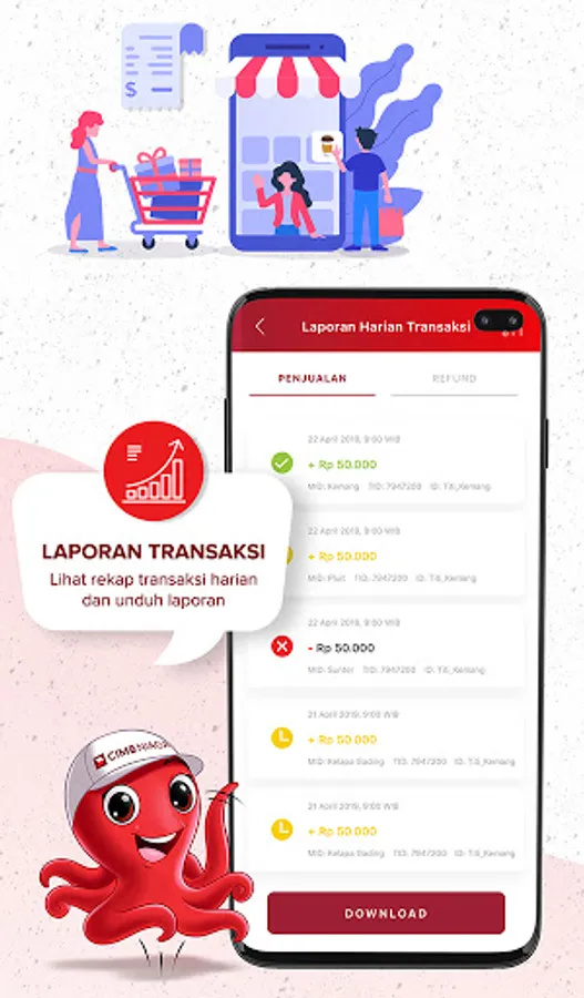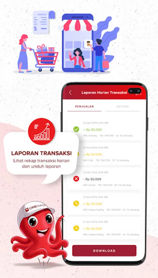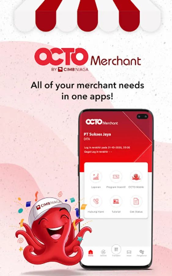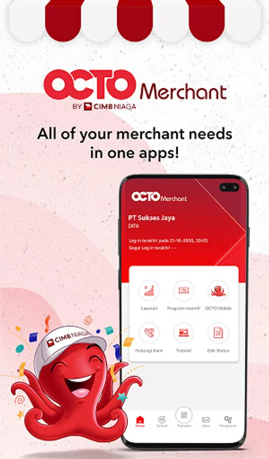 OCTO Merchant is a mobile application from CIMB Niaga, which is here to facilitate CIMB Niaga's business partners in developing their business. OCTO Merchant helps all CIMB Niaga business partners to develop in managing their business anytime and anywhere.