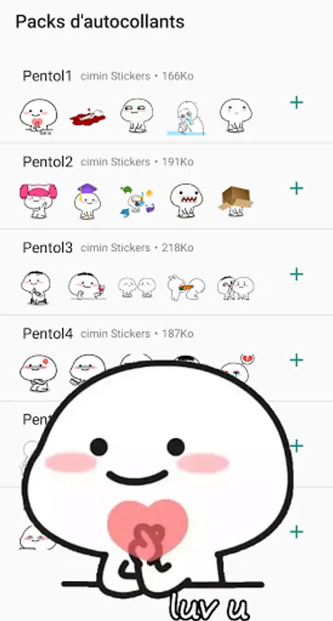 We offer beautiful sets of Pentol stickers: Quby love, funny and crezy, Quby eating and sleeping, emojis stickers and many other stickers.