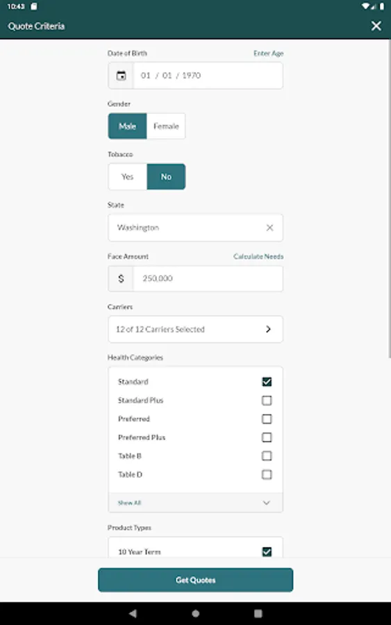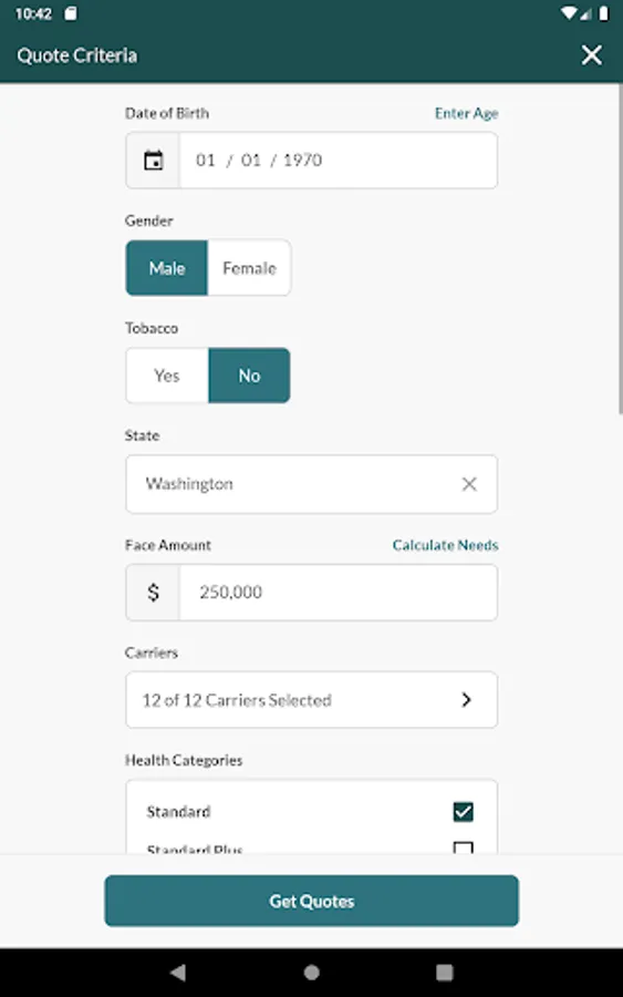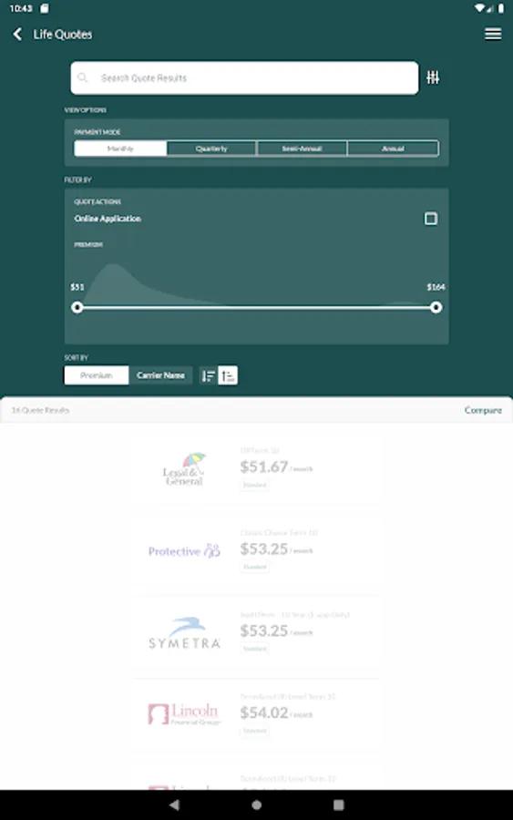 This completely free app delivers quote comparisons for over 30 life insurance carriers. Quotes are given for all 50 States. Are you a life insurance agent? Sign up for a free account to use powerful agent tools.