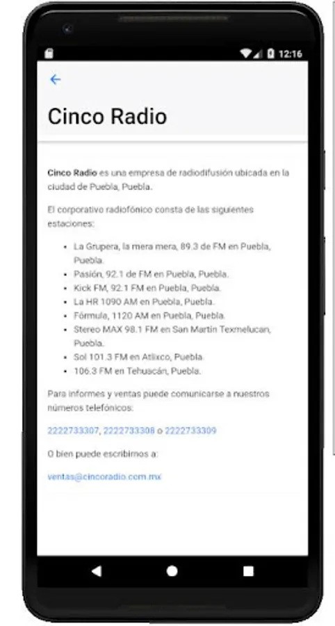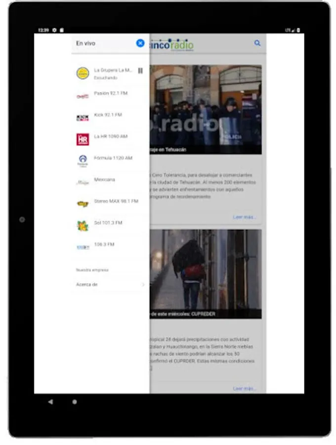 Our application will allow you to listen to the frequencies of Cinco Radio: La Grupera La Mera Mera 89.3 f.m., Passion FM 92.1 f.m., Kick FM 92.1 f.m., HR 1090 a.m., Formula 1120 a.m., Stereo Max 98.1 f.m., Sol FM 101.3 f.m. and 106.3 f.m.