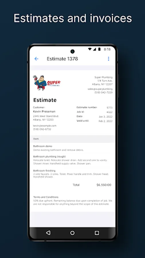 Manage your schedule, create estimates or invoices, keep track of to do lists, write job notes, take photos, and a lot more.
