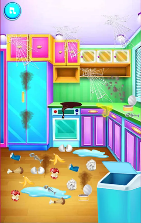 in start the game, should clean up the whole house, bedrooms, kitchen, guesthouse, toilet, stairs, after that