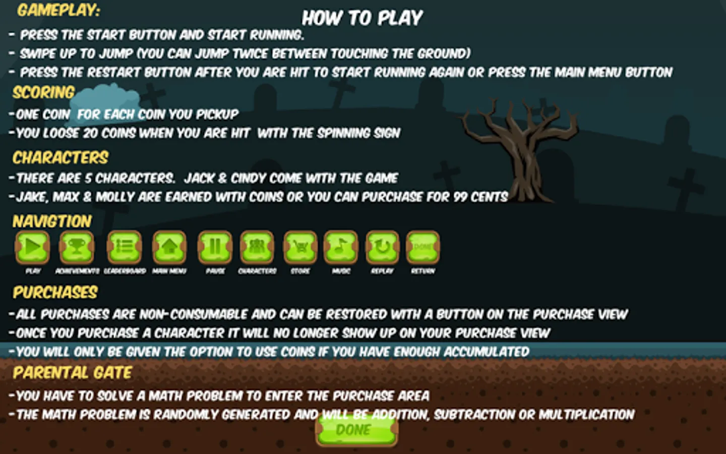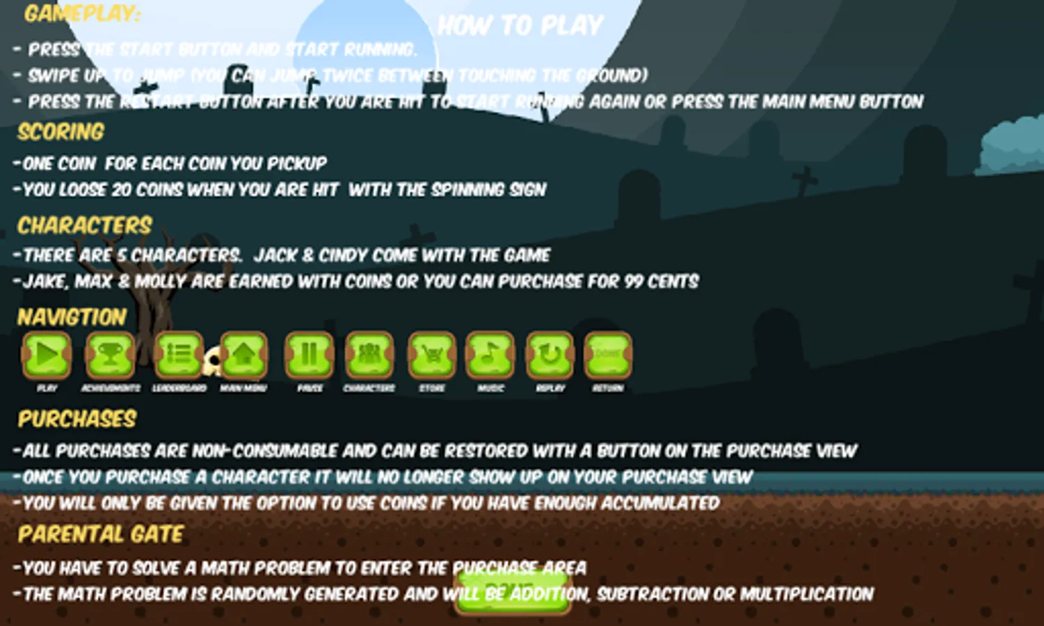 The goal is to run and jump up by swiping up to miss the spinning signs that are randomly placed on the platform.