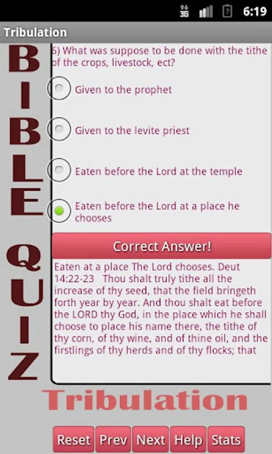 This handy free app lets you test you knowledge of the bible. Perfect for studying up for the yearly Bible Quiz Competitions at your denomination or just for your own knowledge.