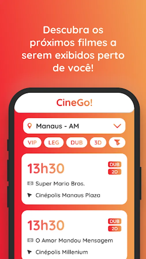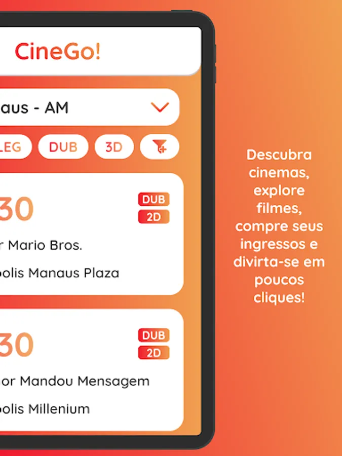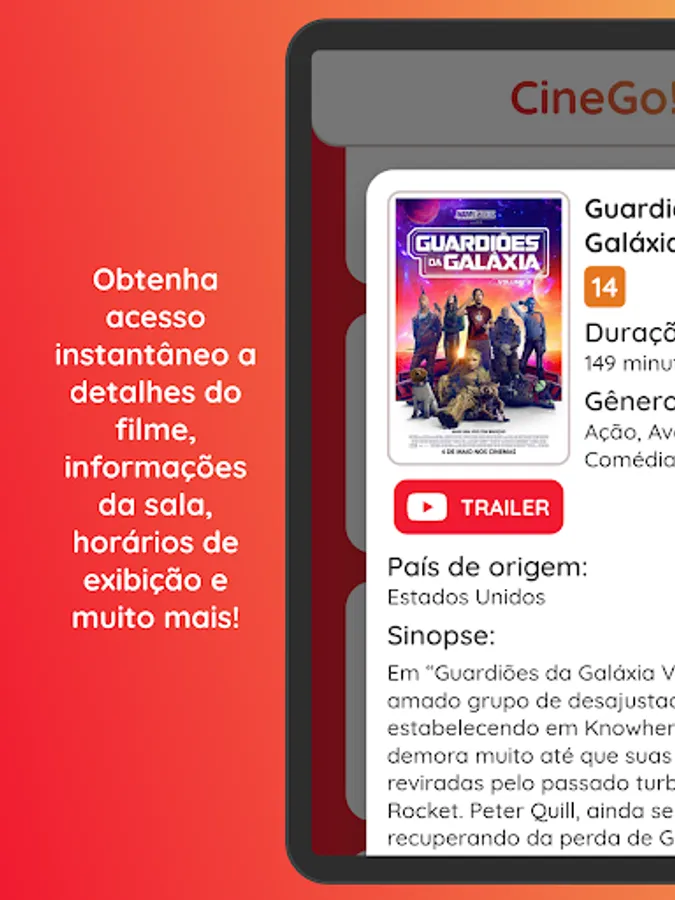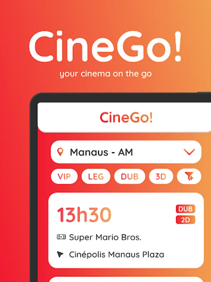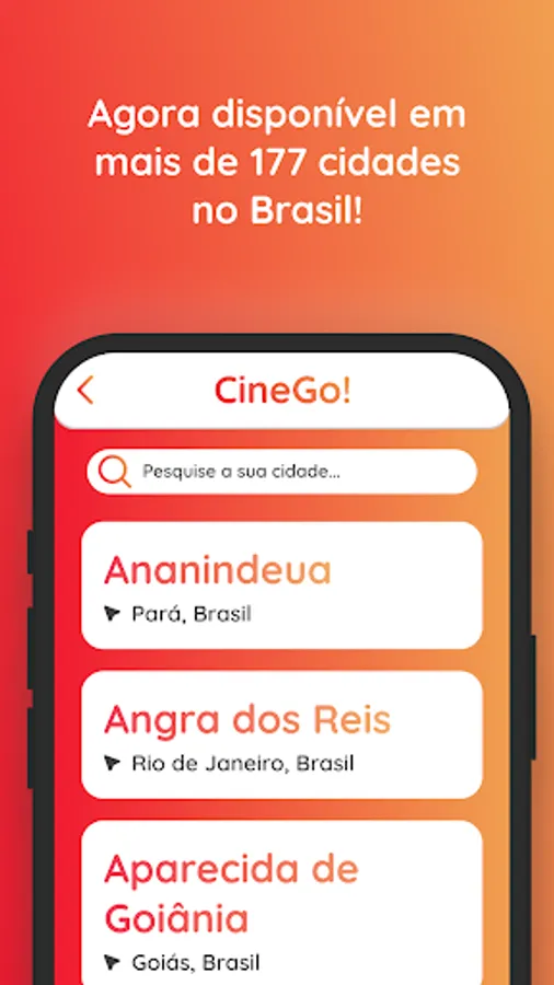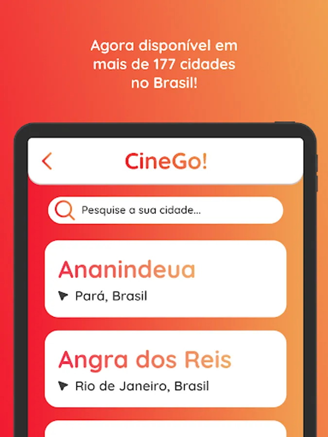 With CineGo!, now available in more than 177 cities in Brazil, going to the cinema has never been so easy! Our sleek and easy-to-use app lets you discover upcoming movies showing near you, as well as allowing you to purchase tickets, get instant access to movie details, theater information, showtimes and much more! Download CineGo now! and take your cinema experience to the next level!