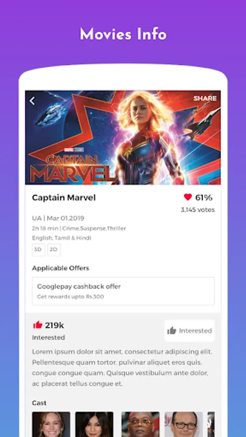 CineGo is a React Native Cinema Ticket Booking Mobile Application UI theme, compatible for both IOS and Android, super flexible and fully responsive React Native design is a complete platform which offers cinema near you and booking tickets. This UI theme is highly optimised and modernised, with our UI theme you can easily find shows near you, find show times and book tickets.