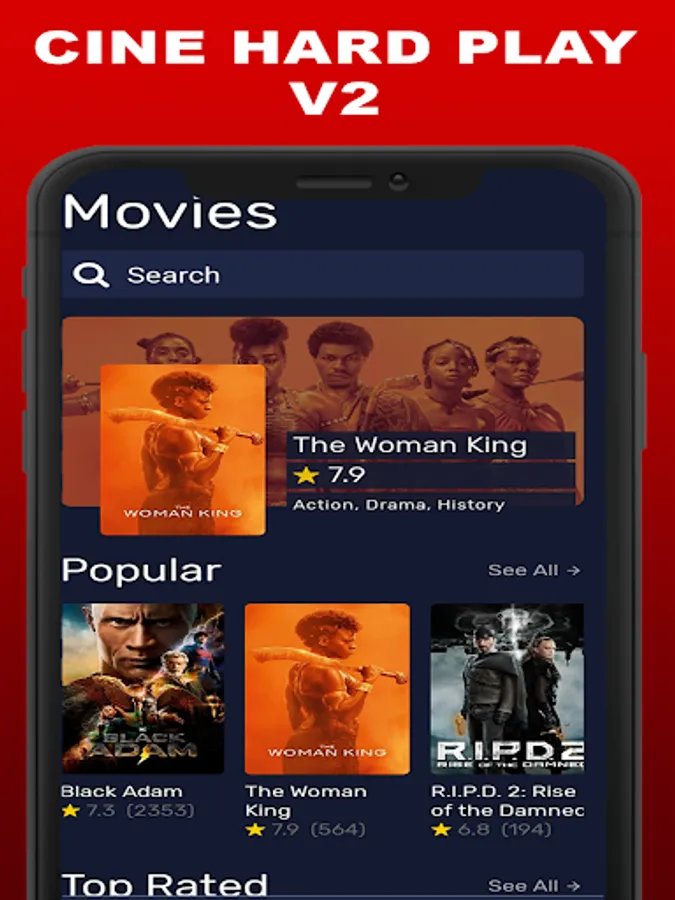 Cine Hard Play V2 is not a movie streaming or content download application. The application only uses the Movie Database API for information and trackers, but is not endorsed or certified by The Movie Database.