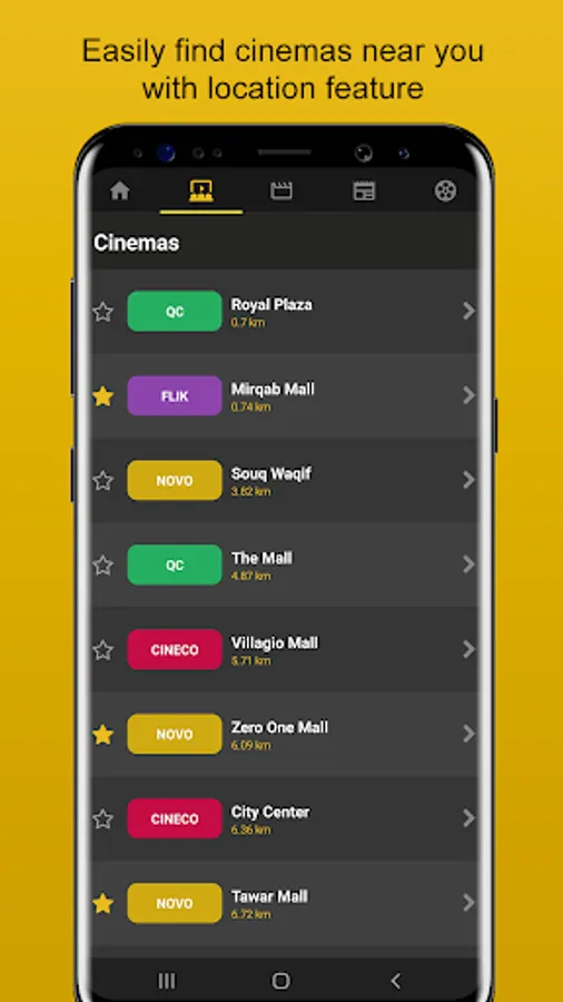 - Add cinemas to favorites. Your favorited cinemas will show at top in listings.