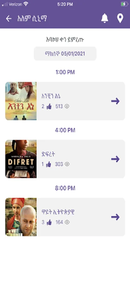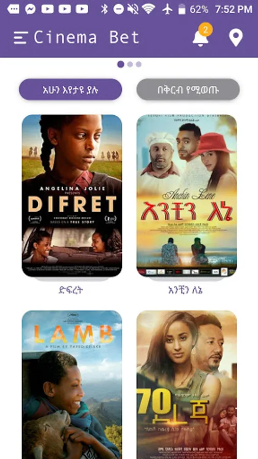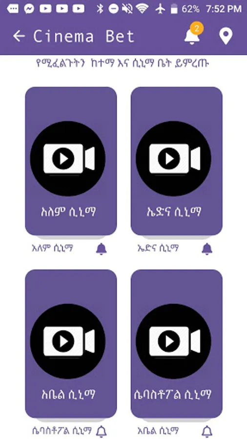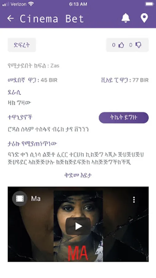 Cinema Bet app is the first movie ticket purchasing platform in Ethiopia. You can watch their release date & time you will also find a brief description of the film, a list of the author's name, Cast, and synopsis of the film's as well as movie preview. Cinema Bet app is a fast and modern application where you can find movie showtime in Ethiopia. Cinema Bet app also allows you to buy movie and theater tickets from any where with out going to movie theater and hassle or procession.