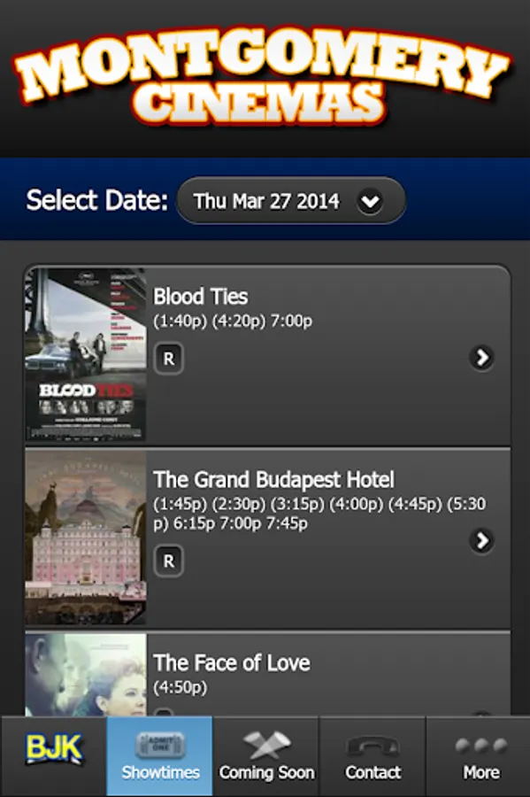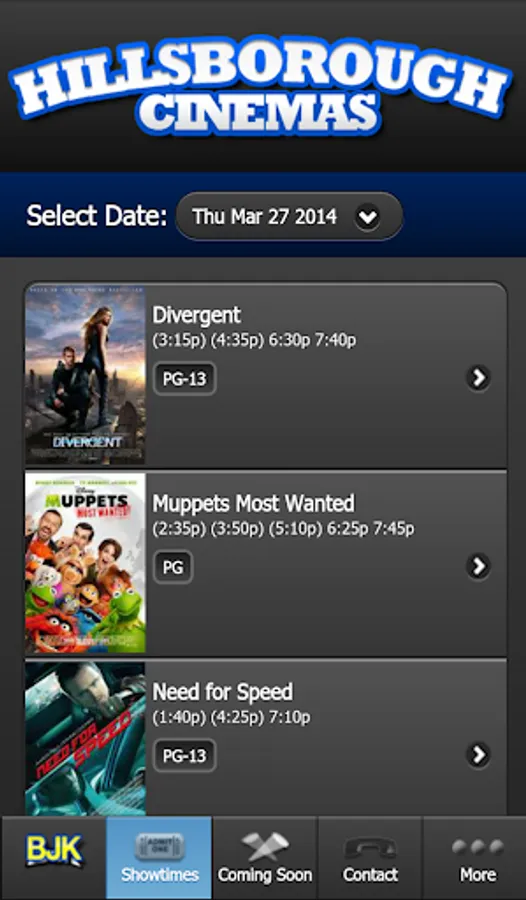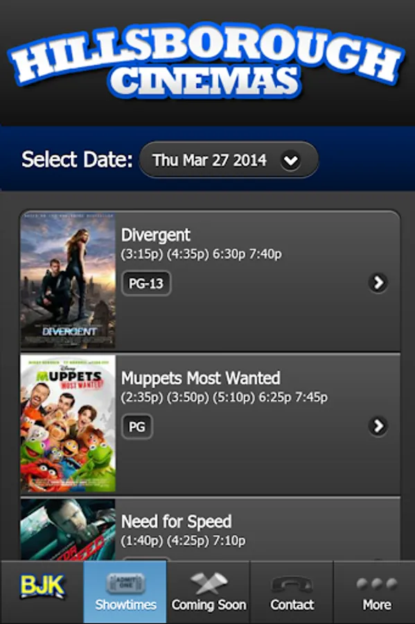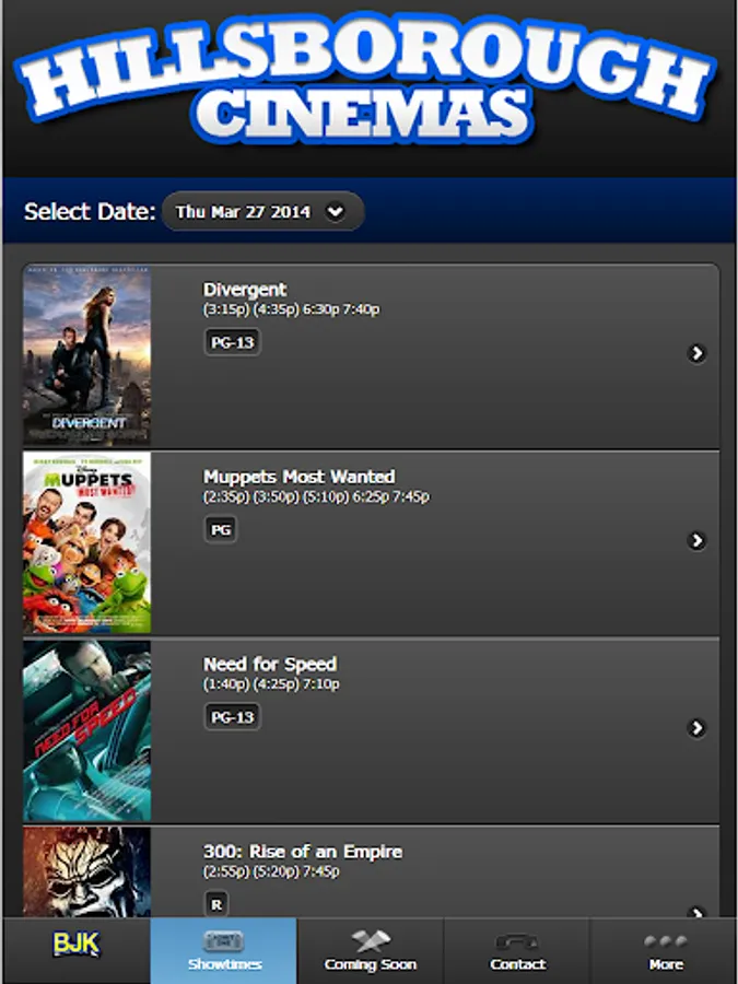 The official showtimes app for BJK Entertainment which includes Hillsborough Cinemas (Hillsborough, NJ) and Montgomery Cinemas (Skillman, NJ) . Our app is your source for movies, coming attractions, theatre news and much more.