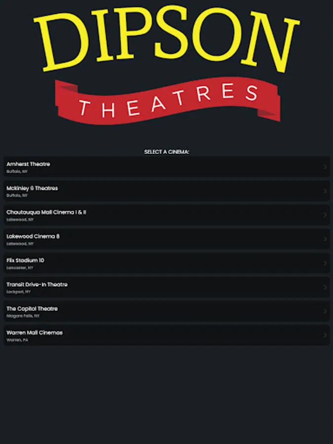 The official showtimes app for Dipson Theatres with movie theatres in New York, Pennsylvania and Michigan. Your source for movies, coming attractions, theatre news and much more.