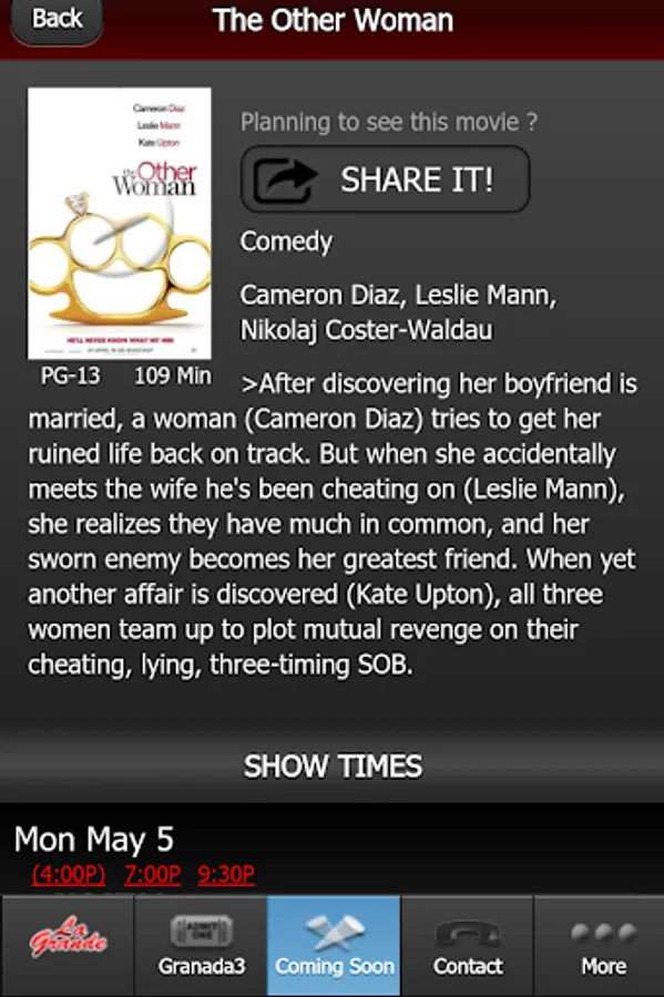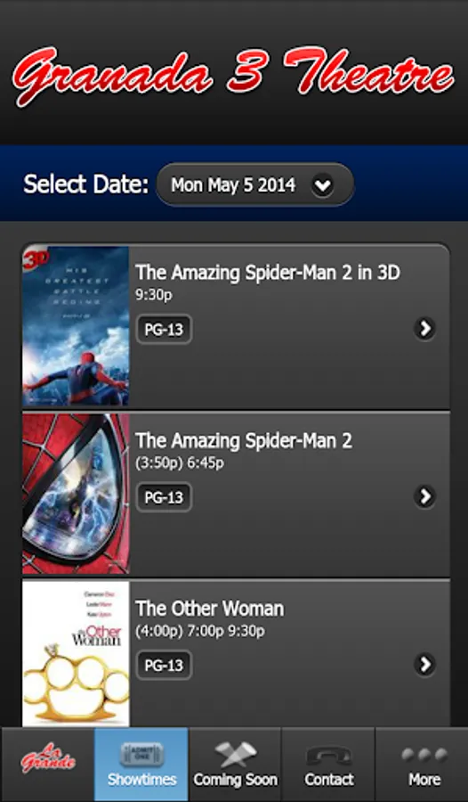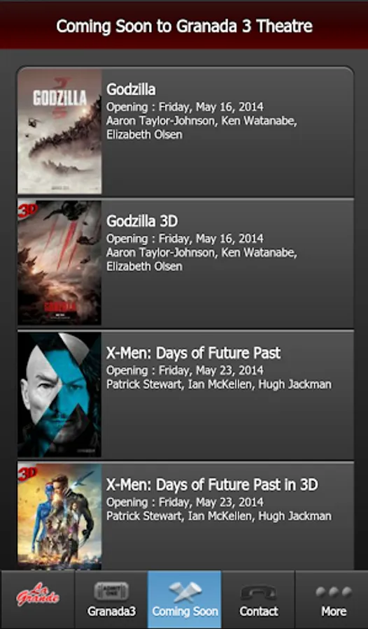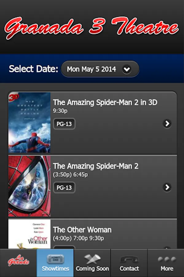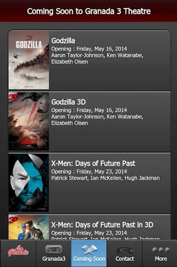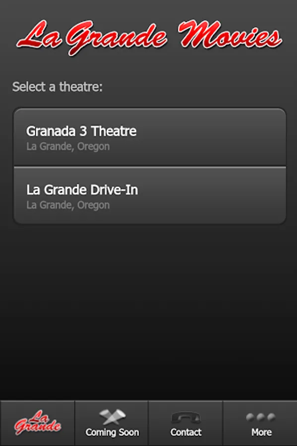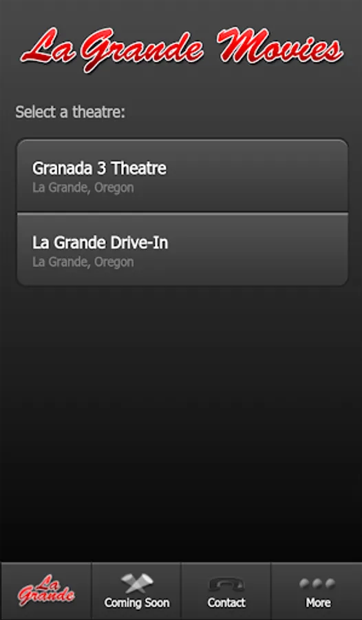 The official showtimes app for La Grande Movies which includes Granada 3 Theatre and La Grande Drive-In . Our app is your source for movies, coming attractions, theatre news and much more.